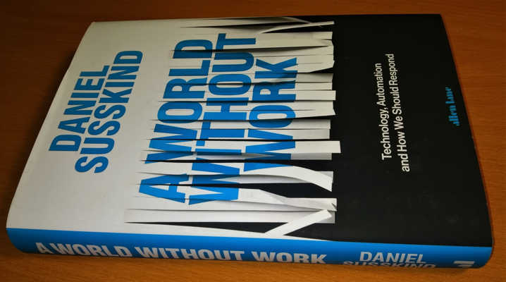 «A World without Work» («Un mundo sin trabajo», aunque no hay edición en español de este título) es un libro de Daniel Susskind, economista (profesor e investigador en la Universidad de Oxford) que fue asesor del Gobierno Británico y se dio a conocer en 2018 para un público amplio al ser coautor, junto a su padre Richard, del best-seller «El futuro de las profesiones«.